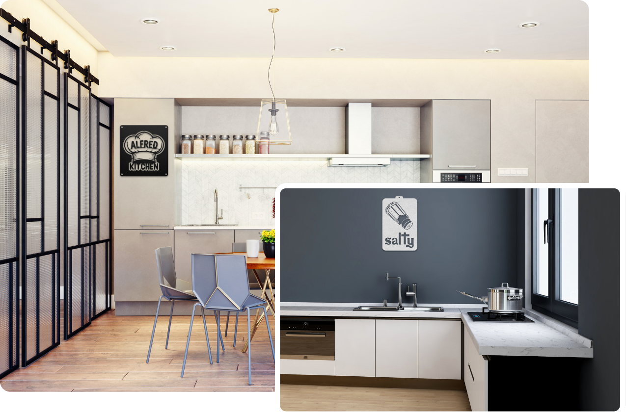 Bold die-cut signs for a timeless, countryside kitchen aesthetic.